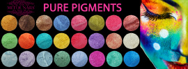 Pigmenten eenvoudig in de plaklaag van Gellak poederen, royaal aanbrengen en voorzichtig met een fluffy penseel afstrijken.